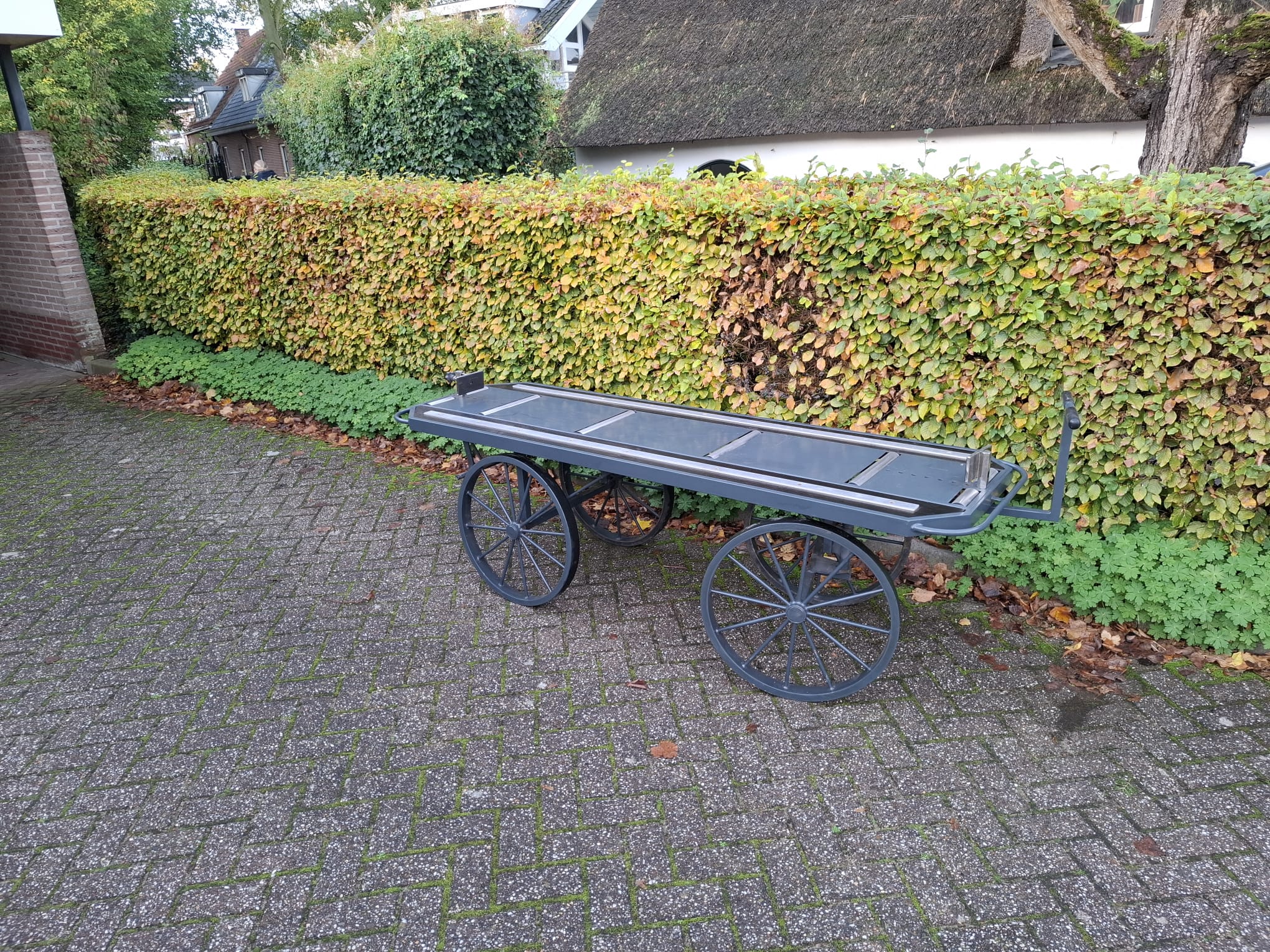 Wij verhuren een baarwagen en een loopkoets voor het vervoer van grafkisten.